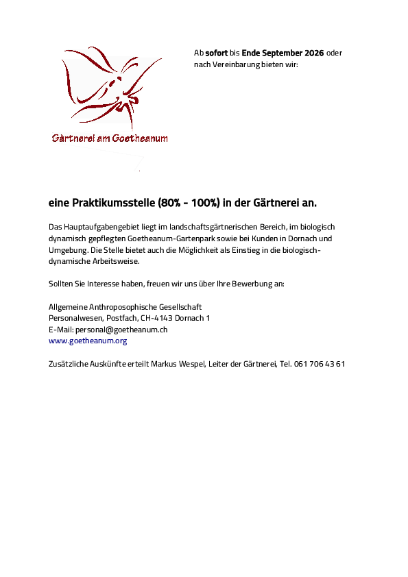Bewerbungen bittte an gaertnerei@goetheanum.ch